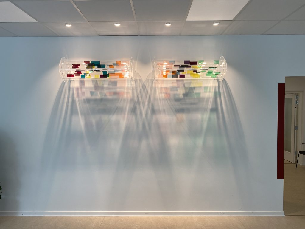 Interaktion: 2 Plexiglas objekter i vinduesnicher.