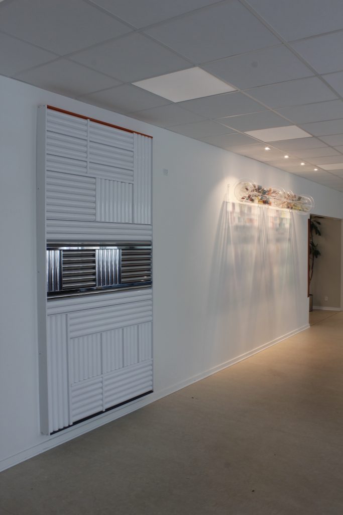 To plexiglasobjekter hver især opbygget af 3 klare plexirør. Farvede plexiglas stykker er påmonteret de enkelte indvendige rør. Hvert objekt sin egen farveholdnig. Det enkelte objekt er i sin enkelthed og opbygning ladet med detaljer – farveoverlap mellem de enkelte små flader, effekten og spejlinger i rørene. Belysningen op/gennemlyser objekterne og danner farveafsmitningen/ lysbilledet nedenunder af mere æterisk karakter. Titlen RELATION kan forstås som det helt konkrete at de 2 objekter med indentisk ydre hver især har et forskelligt indre udtryk. Samtidig er det spillet mellem lyset og objekter der ligeledes er en relation hvor den ene kun eksisterer i kraft af den anden. Højdeplaceringen er valgt så beskueren har mulighed for af nærkigge og opleve kombinationer og detaljer af farver ved at bevæge sig i forhold til objekterne.